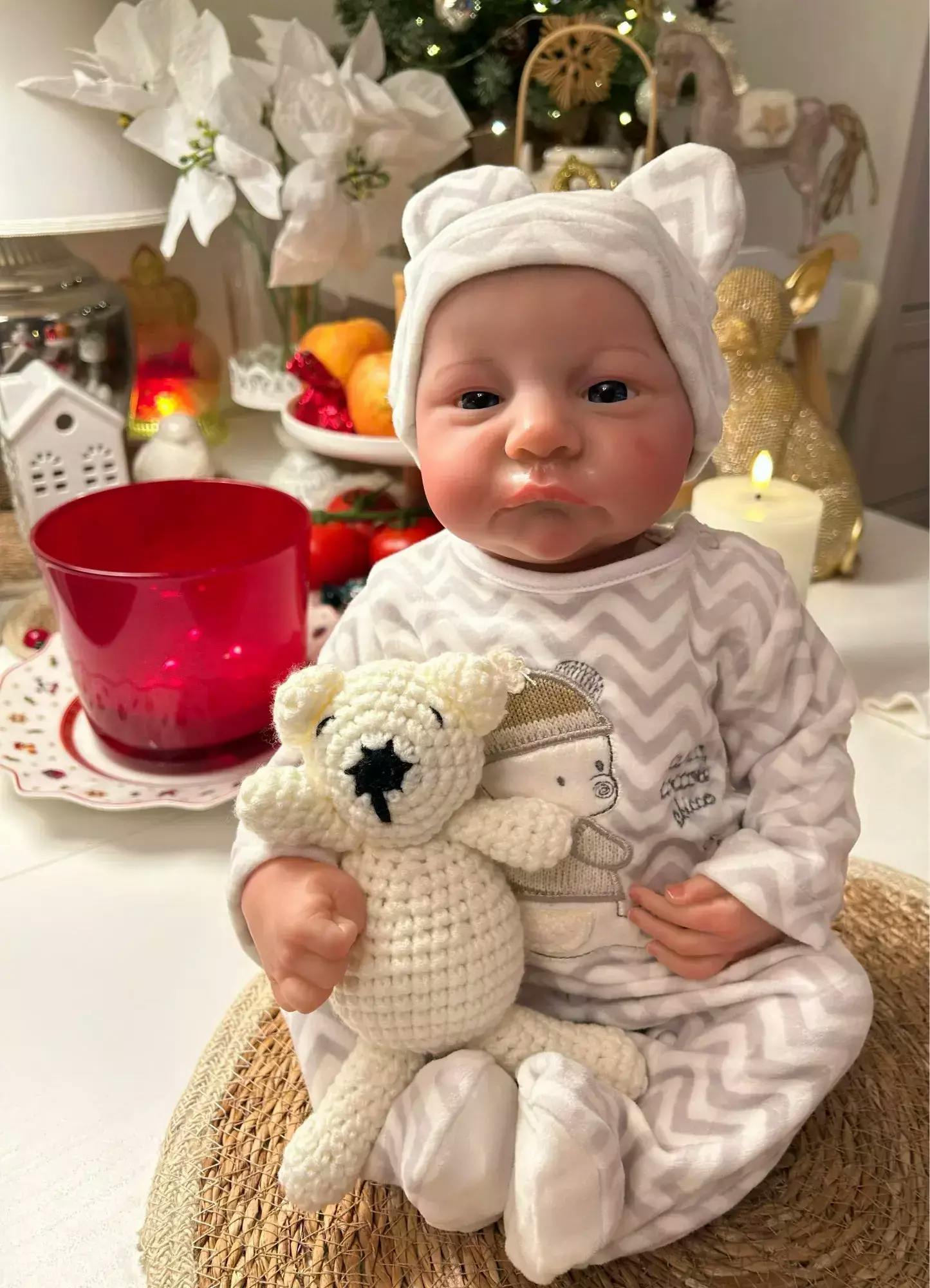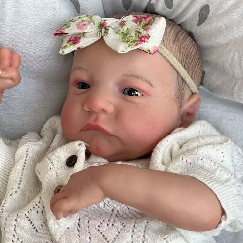 NEBORN LOOK - L'épaule et le corps de la poupée sont en tissu avec rembourrage en coton PP à l'intérieur, 3/4 bras en vinyle et 3/4 jambes en vinyle, le corps n'a pas de sexe. Les membres sont mobiles. La poupée renaissante peut s'asseoir et s'allonger facilement, mais NE PEUT PAS se tenir debout, parler ou être lavée.
