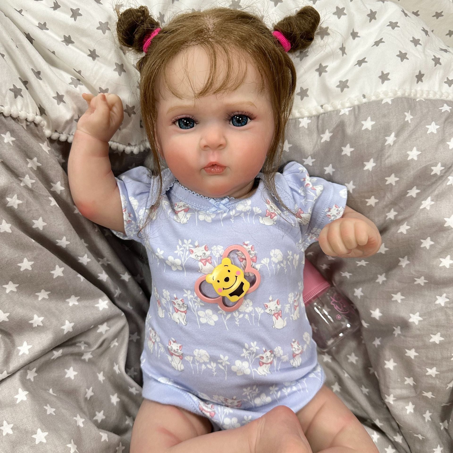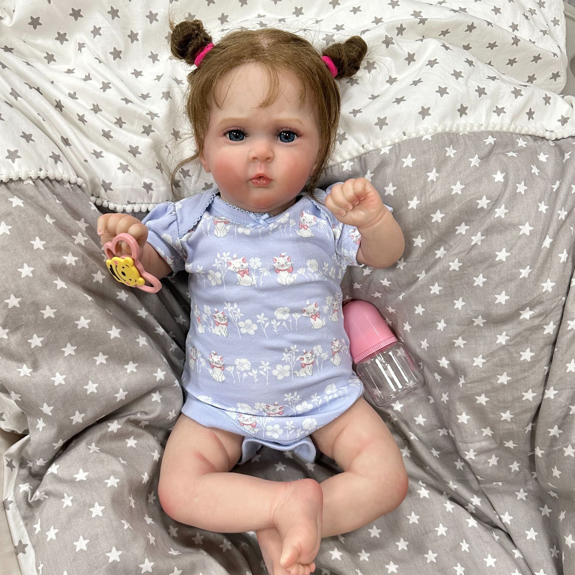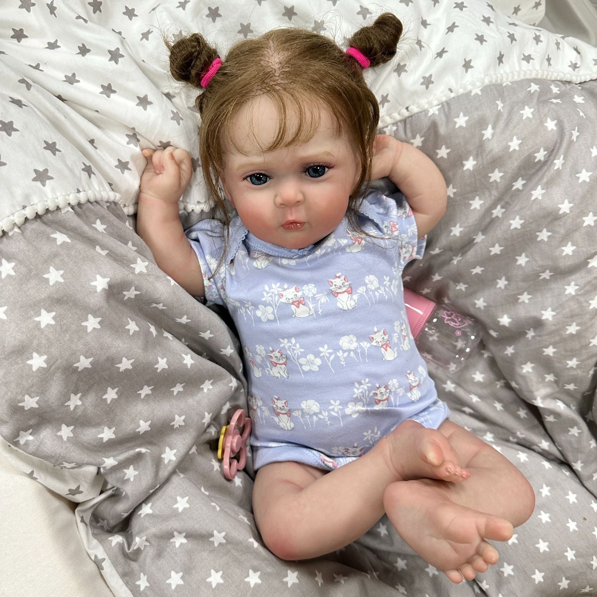 Tout est question de douceur ! Les épaules et le corps du bébé sont en coton de haute qualité et l'intérieur est rempli de coton PP. Les bras et les jambes sont en vinyle GentleTouch et les membres ne sont pas amovibles. Ces poupées n'ont pas de sexe. Vous pouvez vous asseoir et vous allonger facilement, mais vous ne pouvez pas vous lever ni prendre un bain.