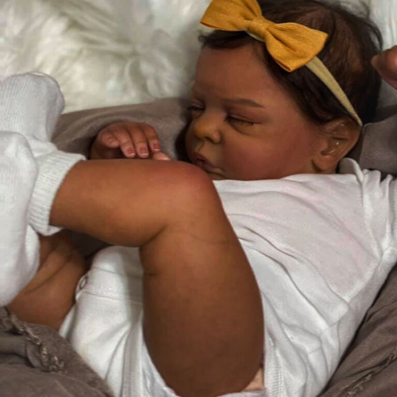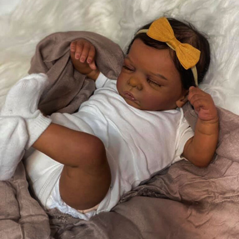 Poupées afro-américaines Reborn Isaac yeux fermés 19 pouces Romy