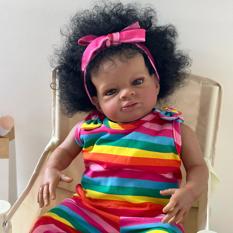 20 pouces yeux ouverts peau foncée cheveux bouclés Poupée Reborn-Lanny