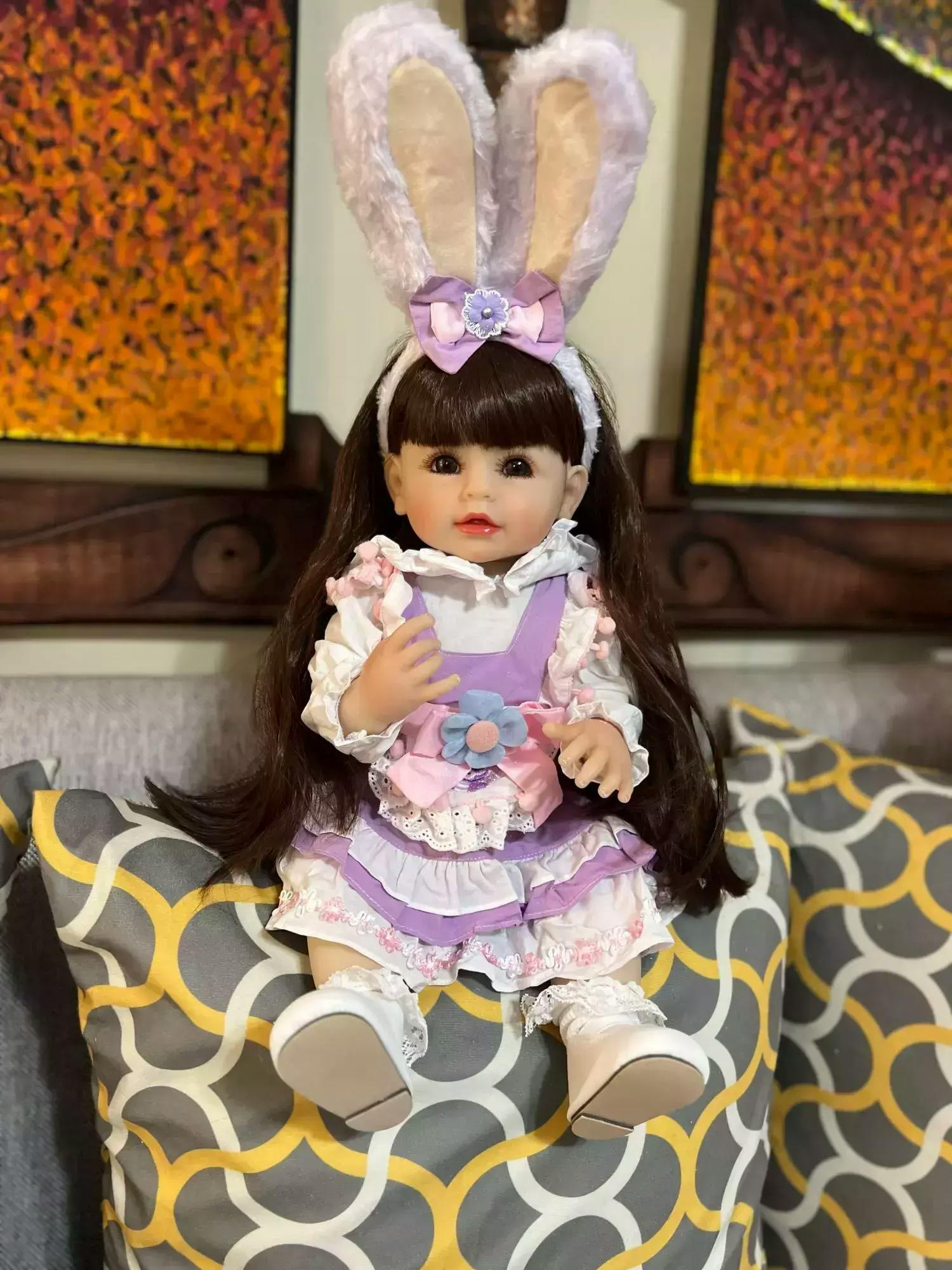 Poupée Reborn fille de 22 pouces avec cheveux longs
