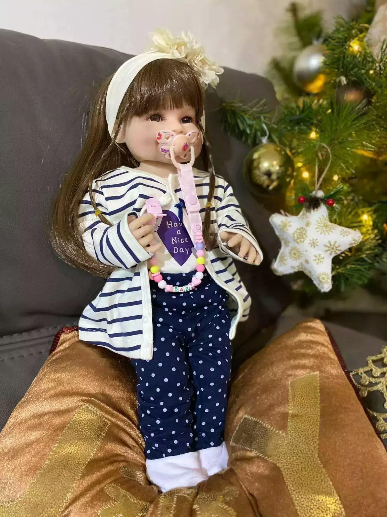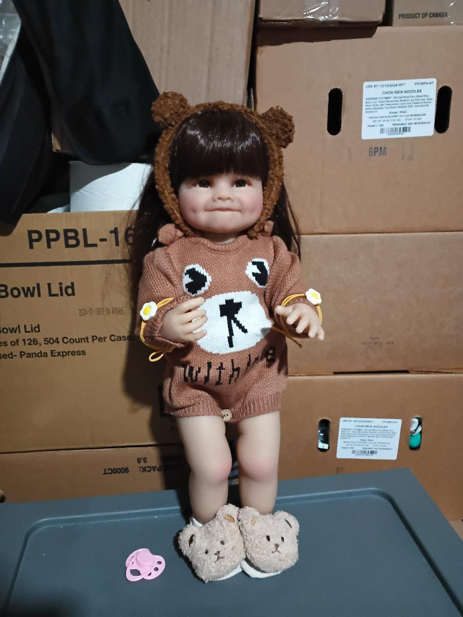 Superbe, très réaliste, exactement comme sur la photo, je l'adore ! Je l'ai habillée et elle porte des vêtements pour bébé de 0 à 2 mois. Son poids est idéal.