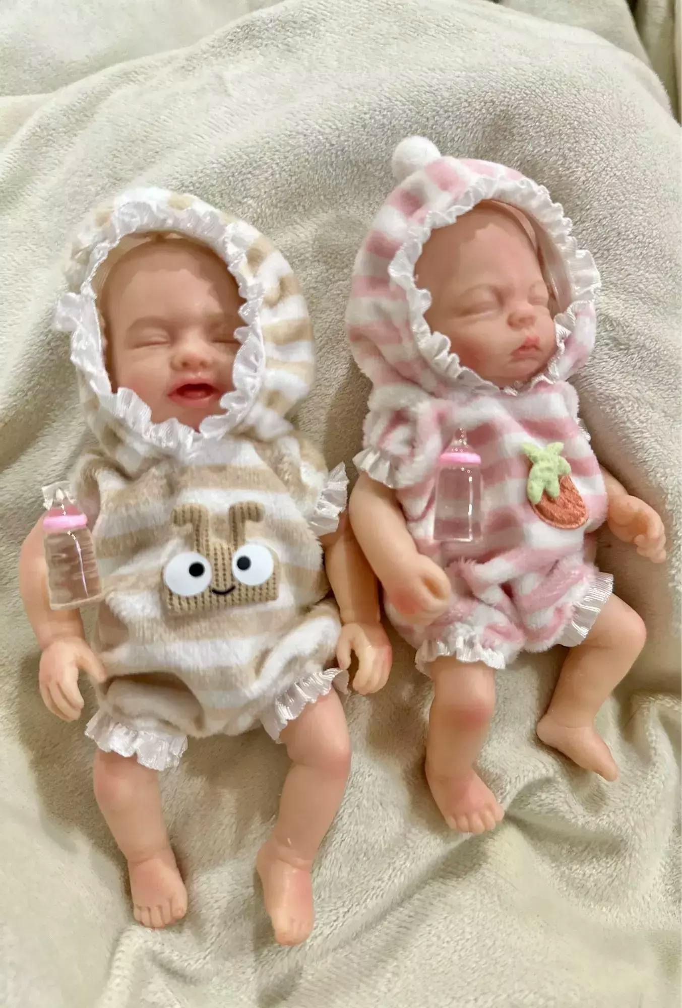 Mini poupée Reborn en Silicone 6 pouces yeux fermés filles jumelles