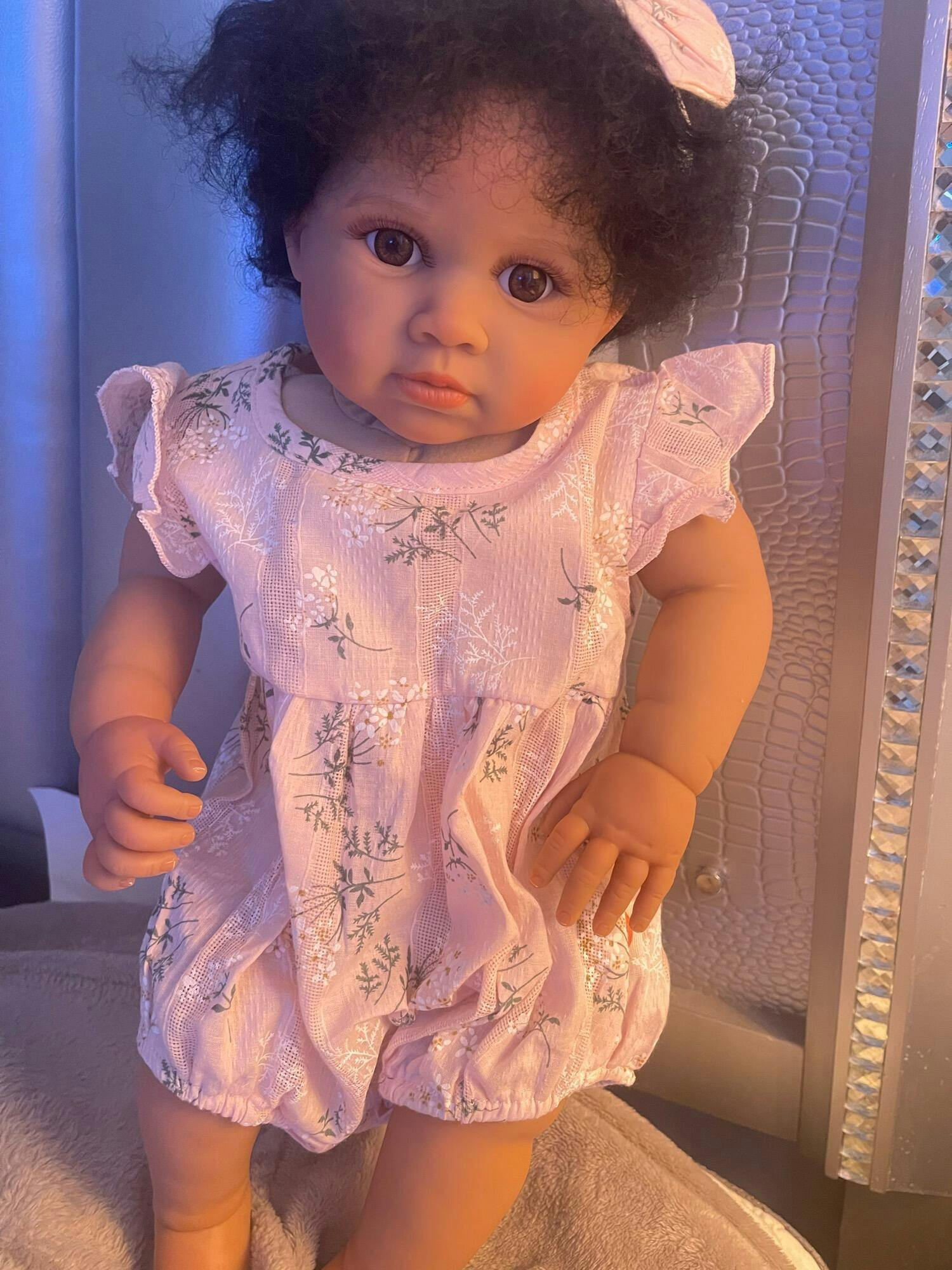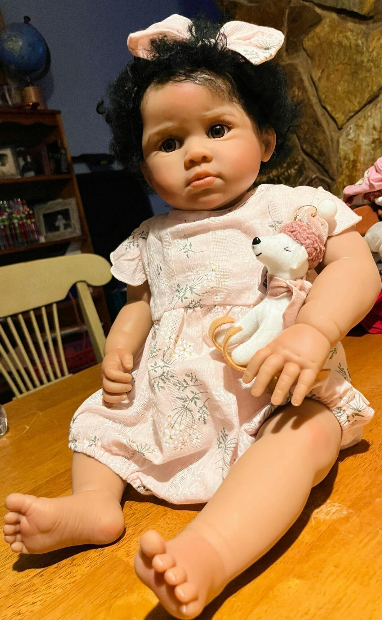 Poupée reborn afro-américaine cerise 60 cm aux yeux ouverts - Cuddly