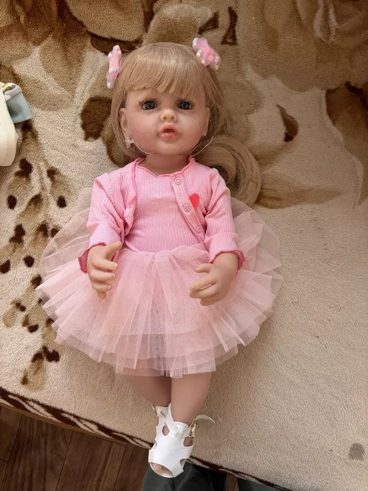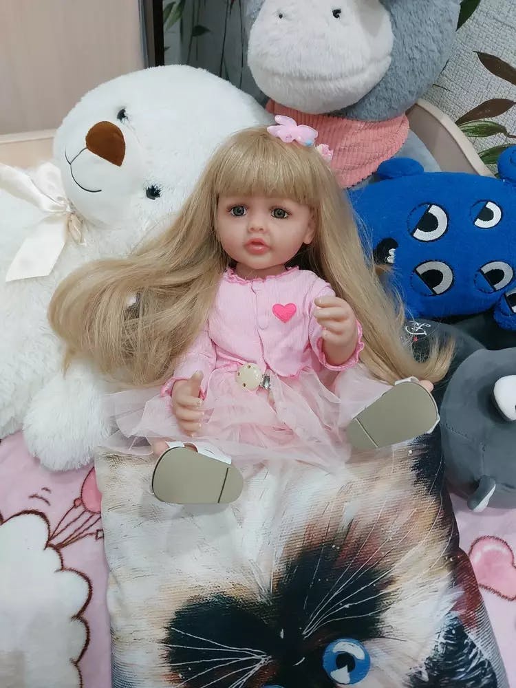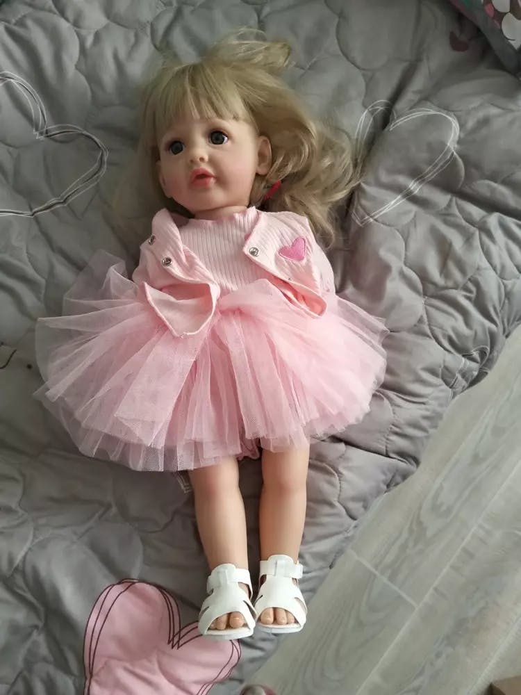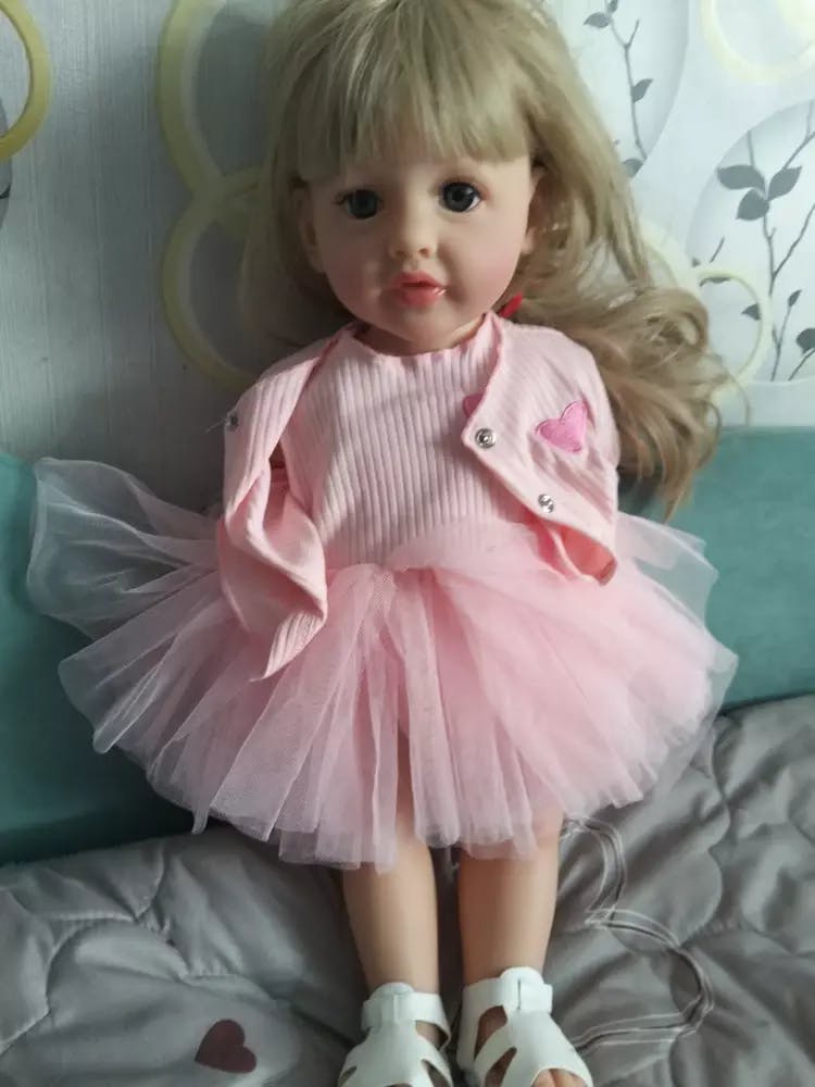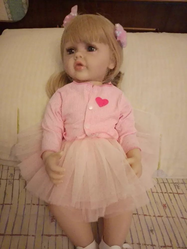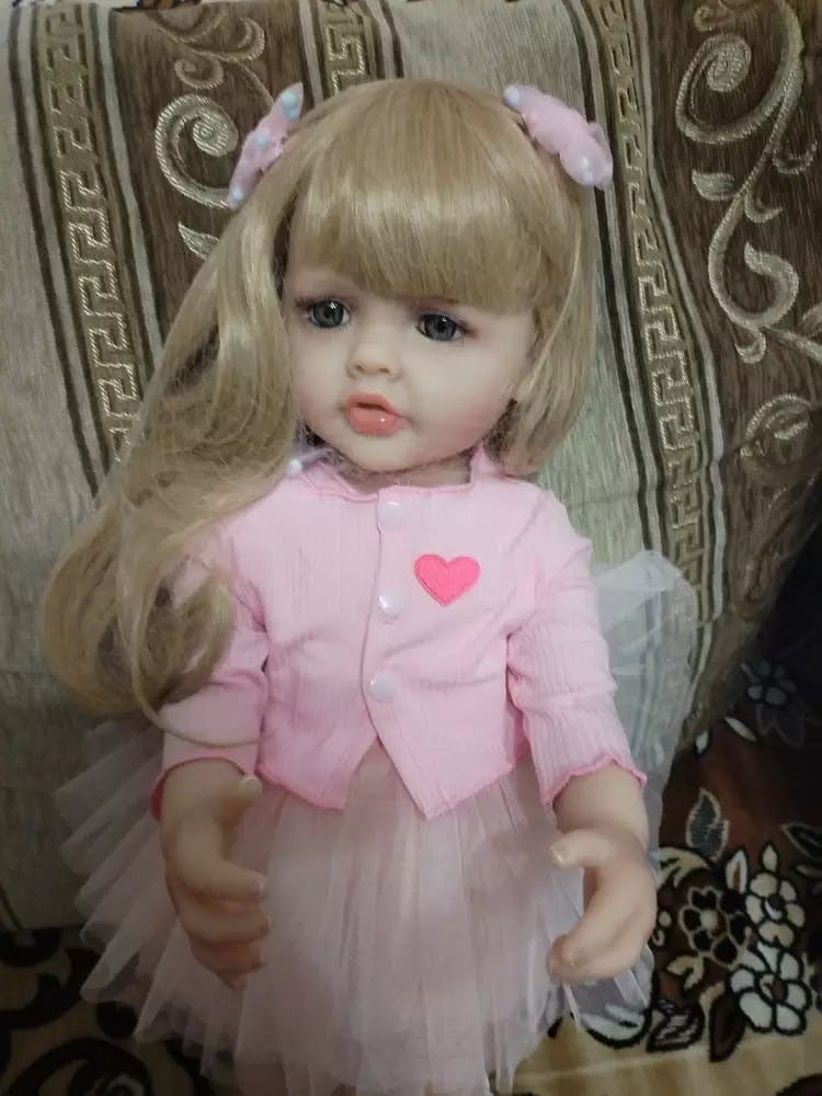 Bébé fille reborn aux cheveux blonds longs et aux yeux ouverts de 22 pouces avec robe rose-Betty