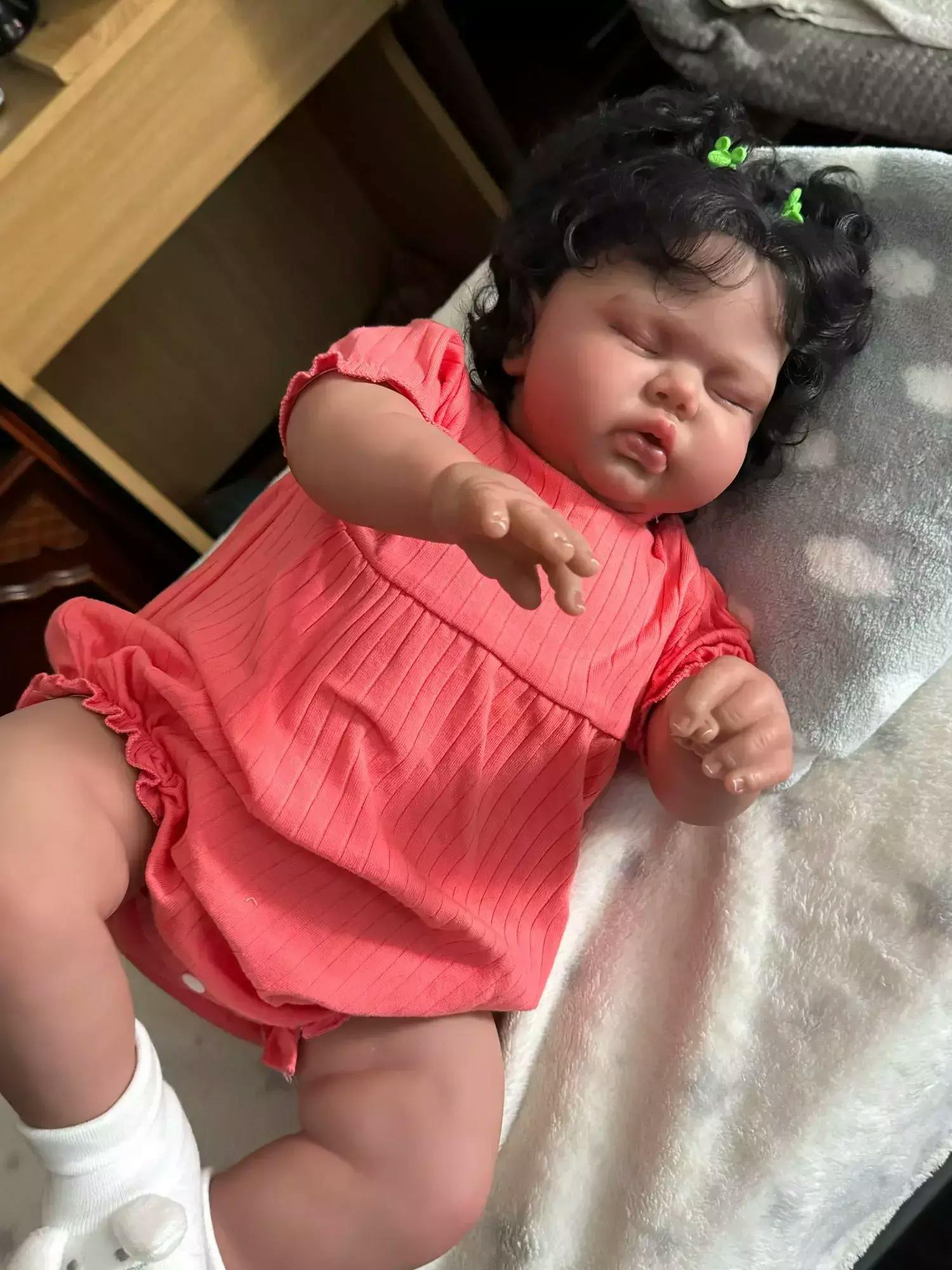 Bébé Reborn Fille Câline de 24 pouces Yeux Fermés Peau Foncée-Pickle