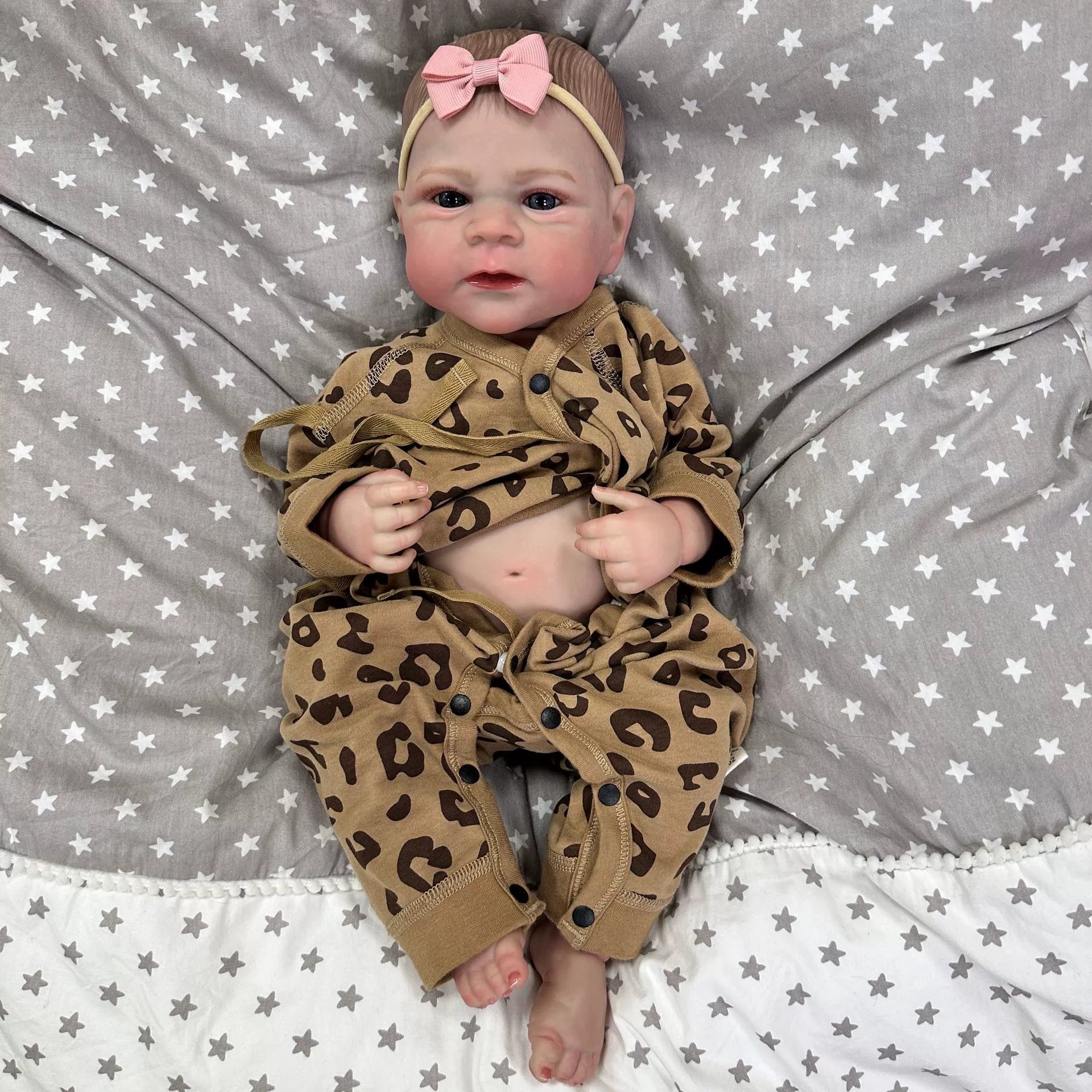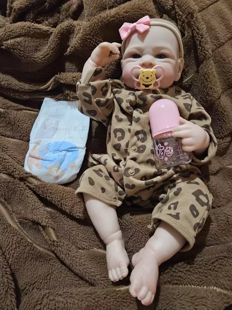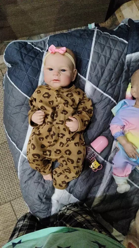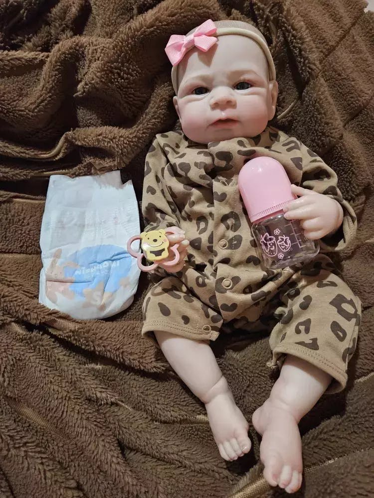Bébé fille reborn de 50 cm yeux ouverts en tenue léopard - Elijah