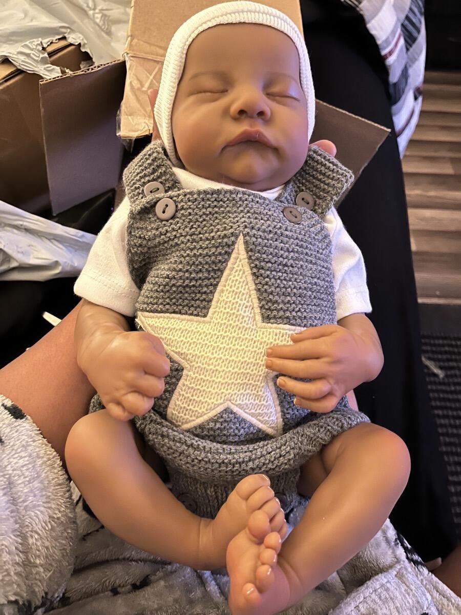 Bébé Reborn Levi Perry de 45cm yeux fermés peau foncée corps doux