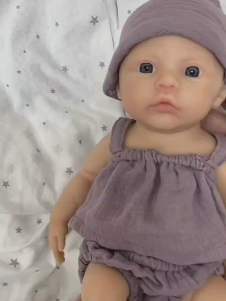 Bébé reborn fille de 30cm en silicone souple yeux bleus vêtue de vêtements violets - Prairie