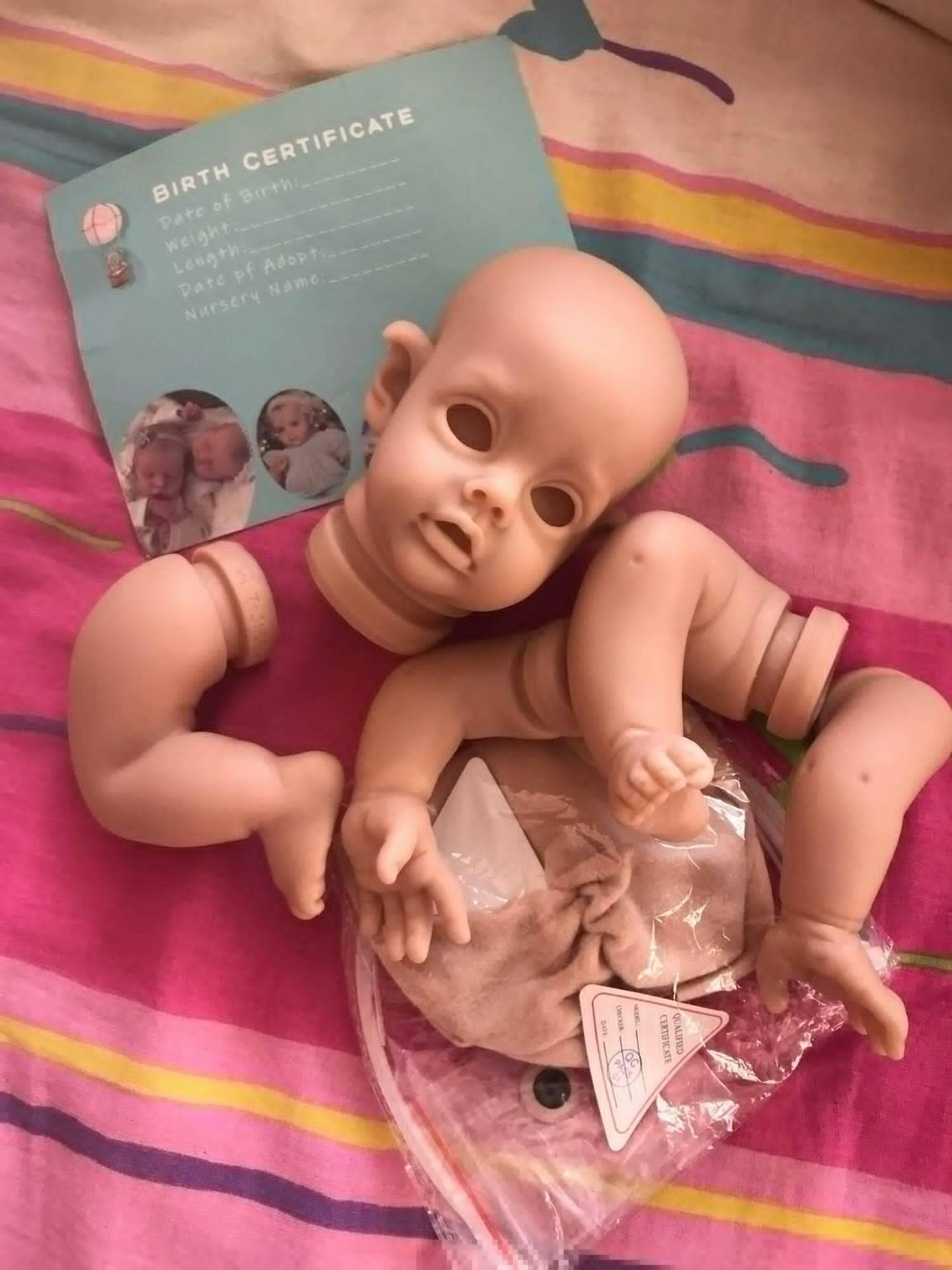 REMARQUE: Cet article est un kit de vinyle vierge et non assemblé, les images de la poupée finie avec des vêtements uniquement à titre de référence. Si vous décidez de chauffer votre vinyle qui pourrait se fissurer ou faire des bulles, ce n'est pas la faute du fabricant ou du processus d'inspection