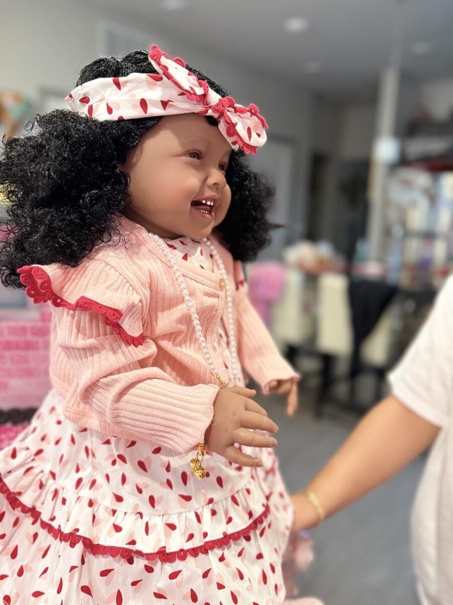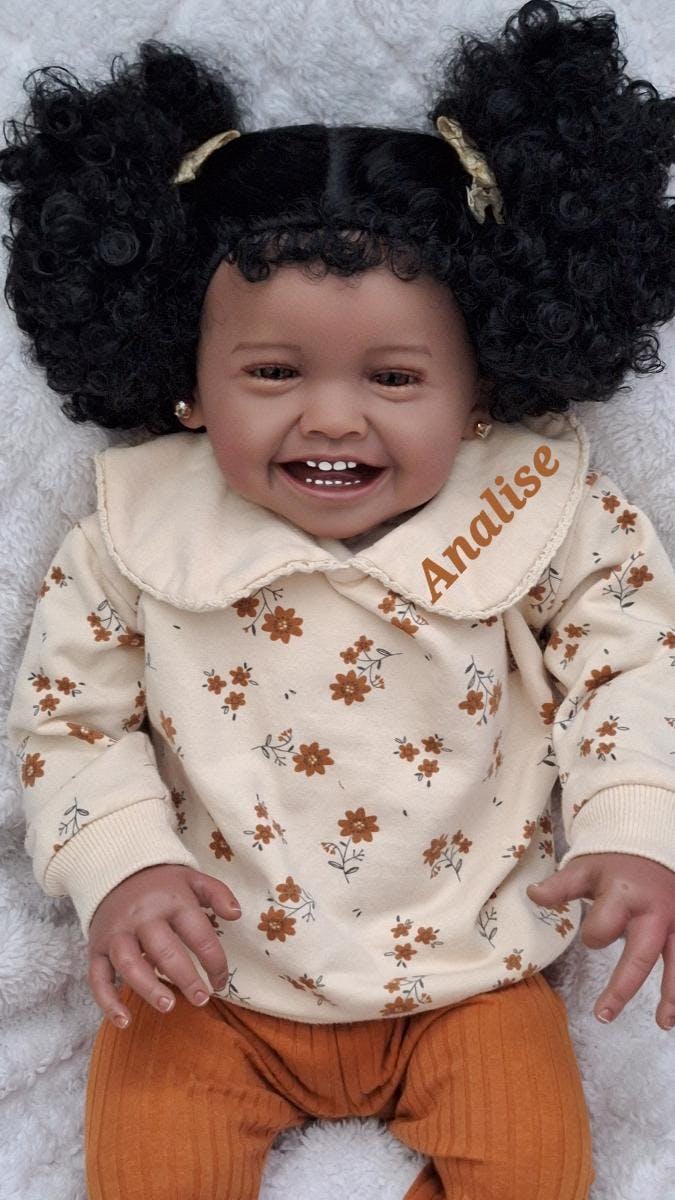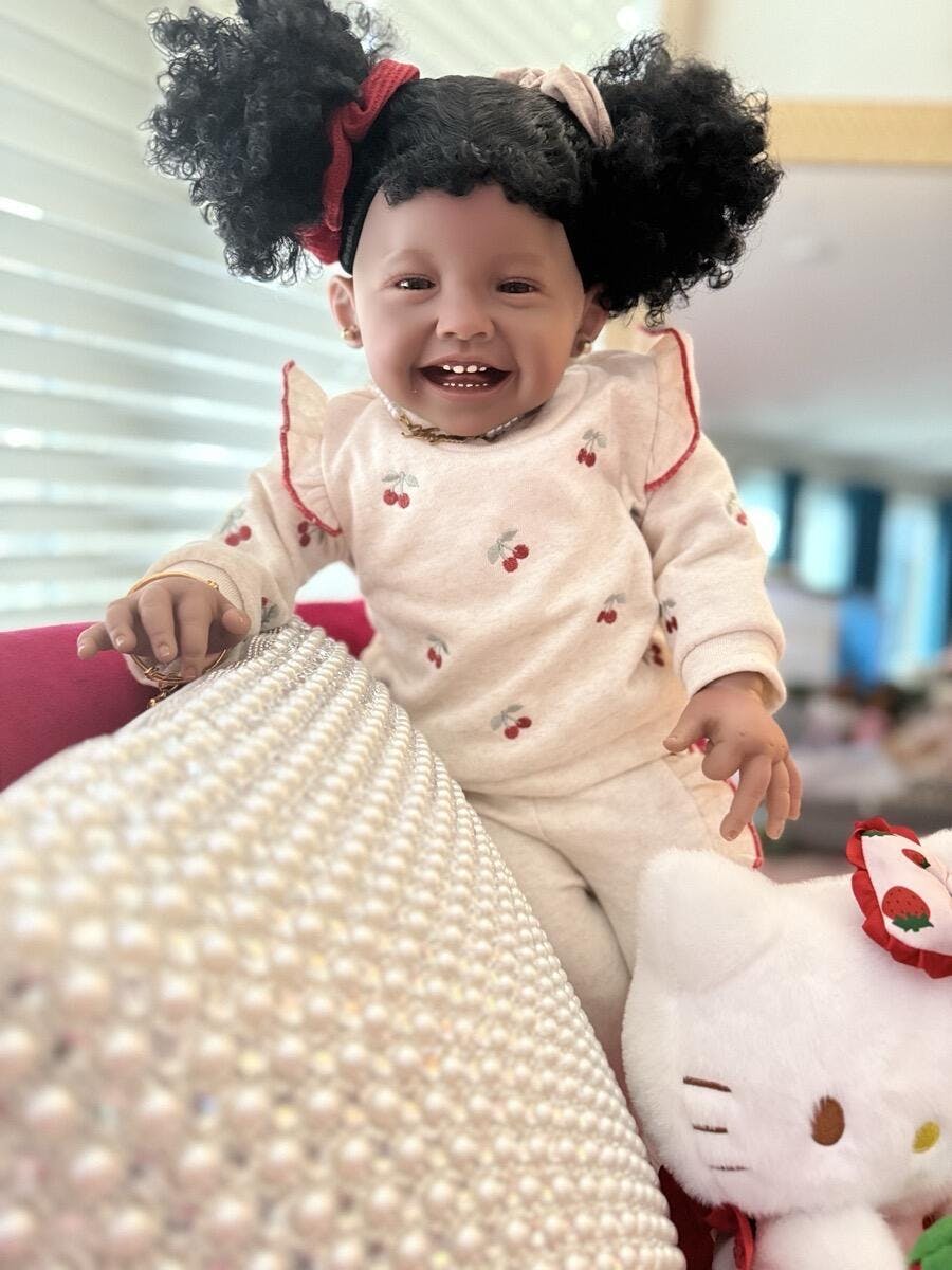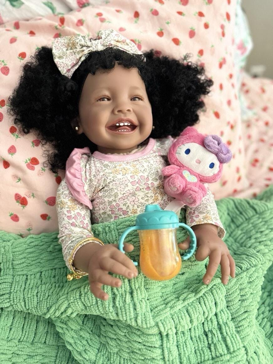 Poupée Reborn afro-américaine Mila de 60 cm corps souple et souriant