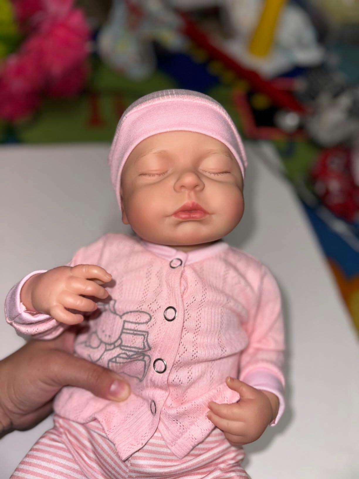 Poupée Reborn aux yeux fermés de 20 pouces en vêtements roses-Loulou