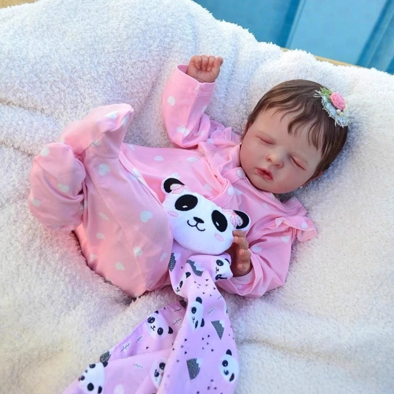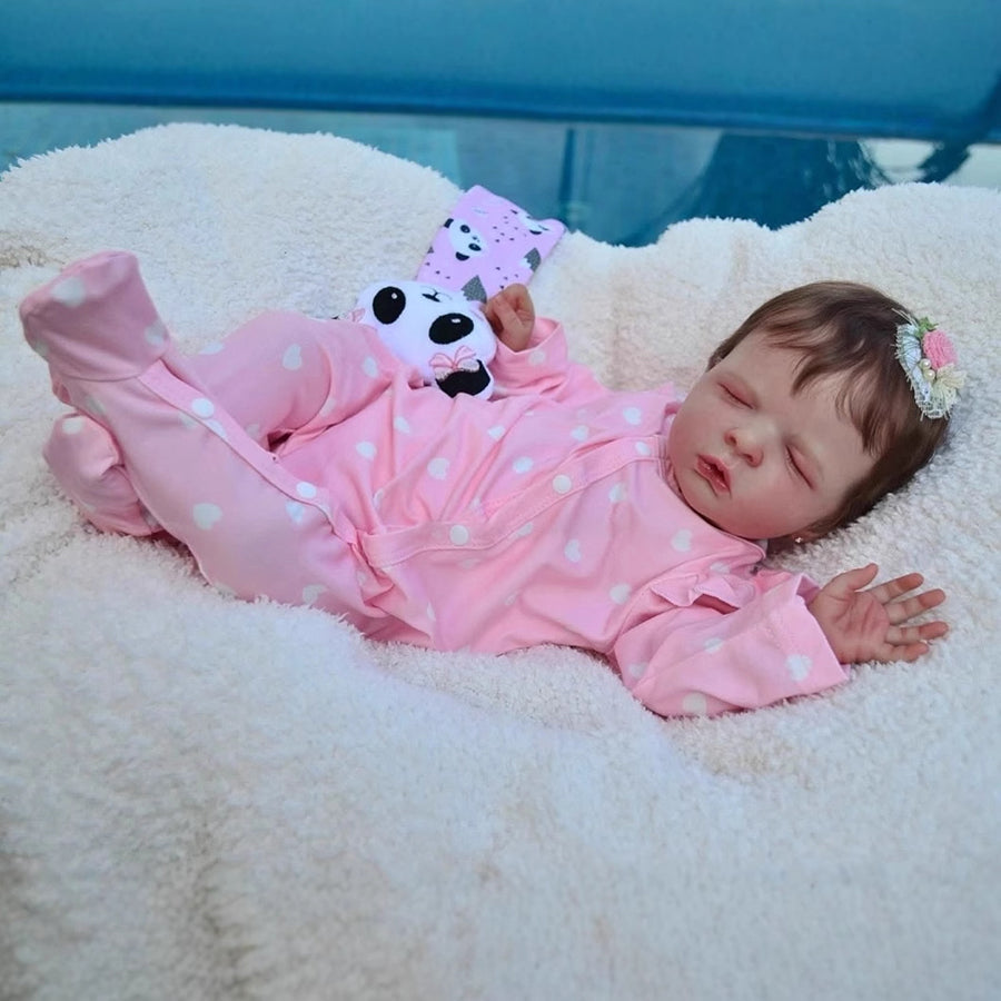 Poupée reborn de 48 cm yeux fermés cheveux courts vêtements roses-Louisa