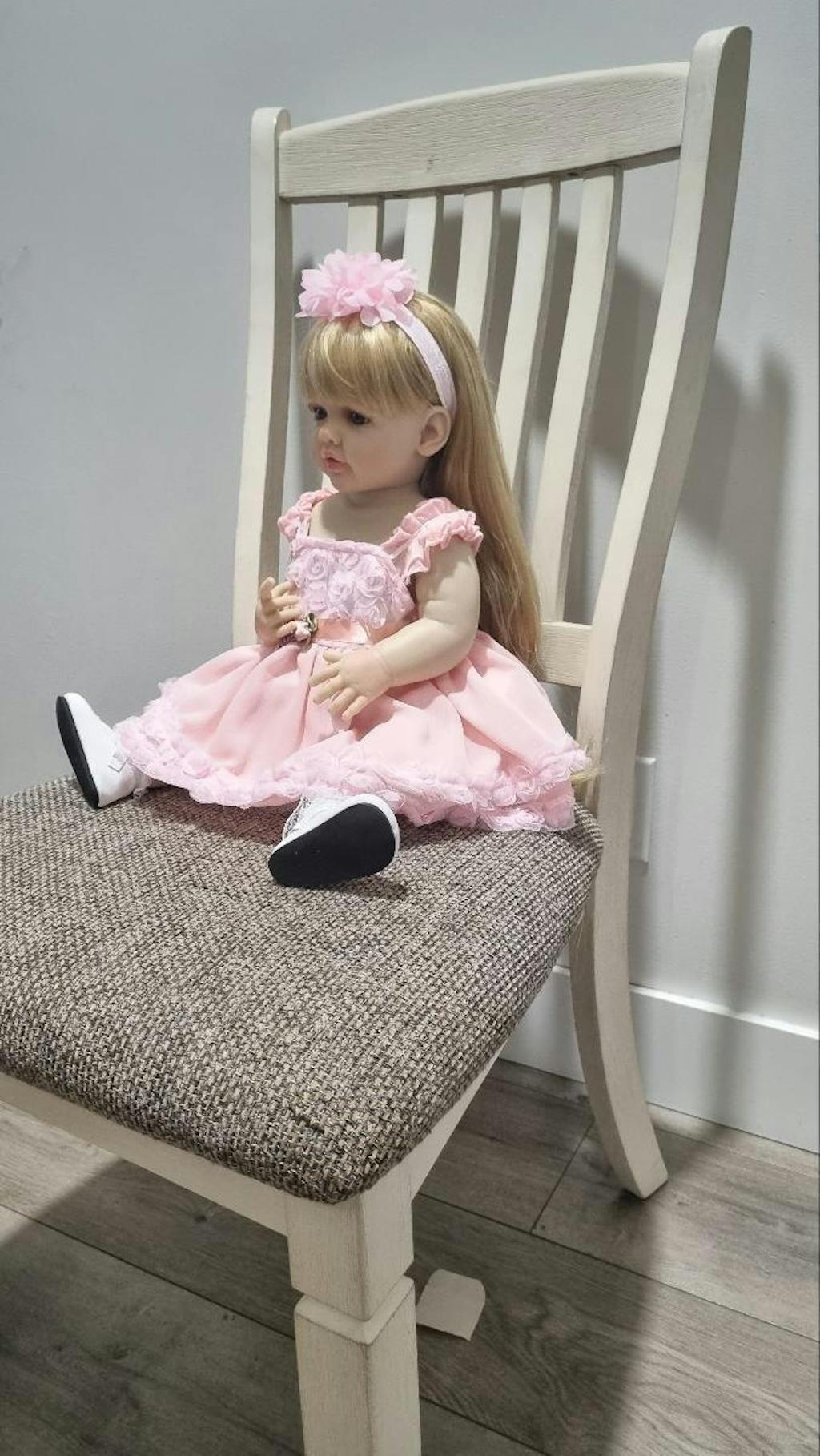 Poupée Reborn aux cheveux blonds longs de 22 pouces fille en robe rose-Betty