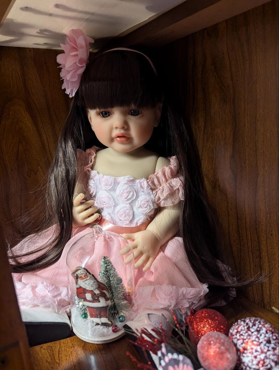 Poupée Reborn aux cheveux bruns longs de 22 pouces fille en robe rose-Betty