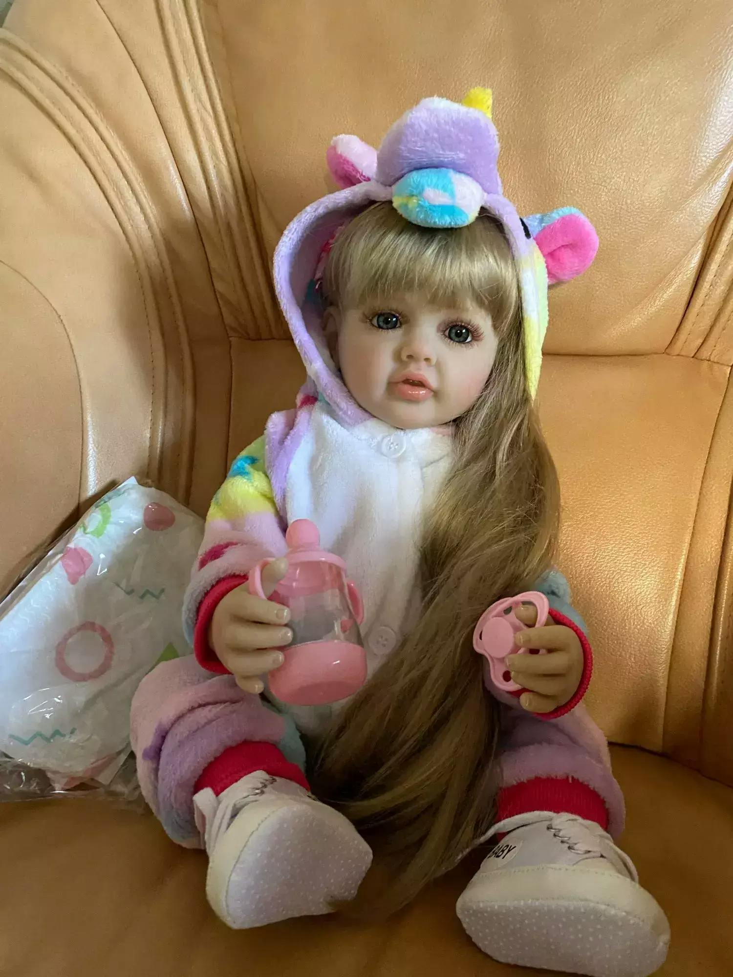Poupée Reborn aux cheveux blonds longs et aux yeux ouverts de 22 pouces pour filles - Betty