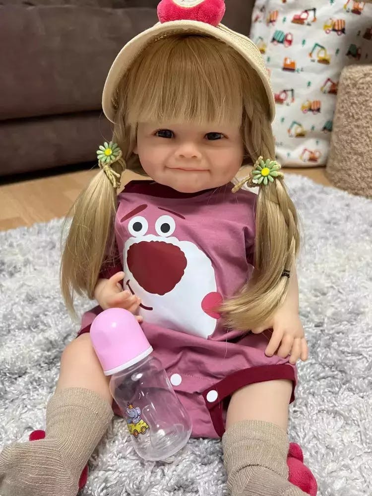 Poupée Reborn aux cheveux blonds longs et aux yeux ouverts de 22 pouces pour filles - Raya