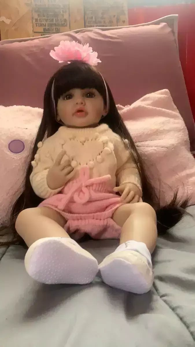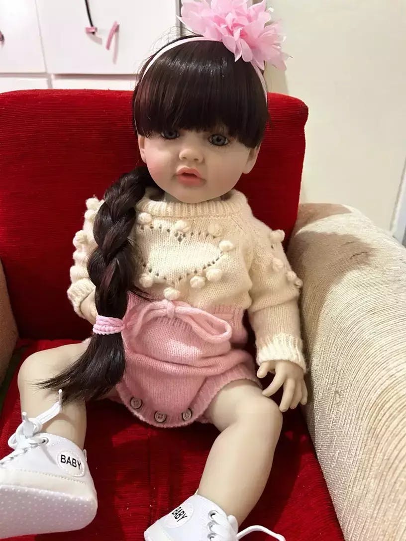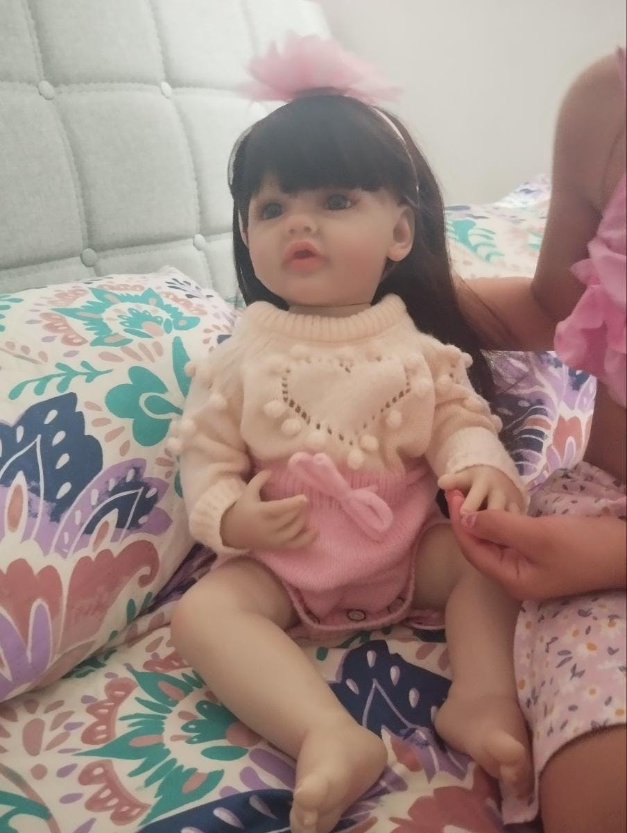 Poupée Reborn pour filles cheveux longs bruns et yeux ouverts de 22 pouces - Betty