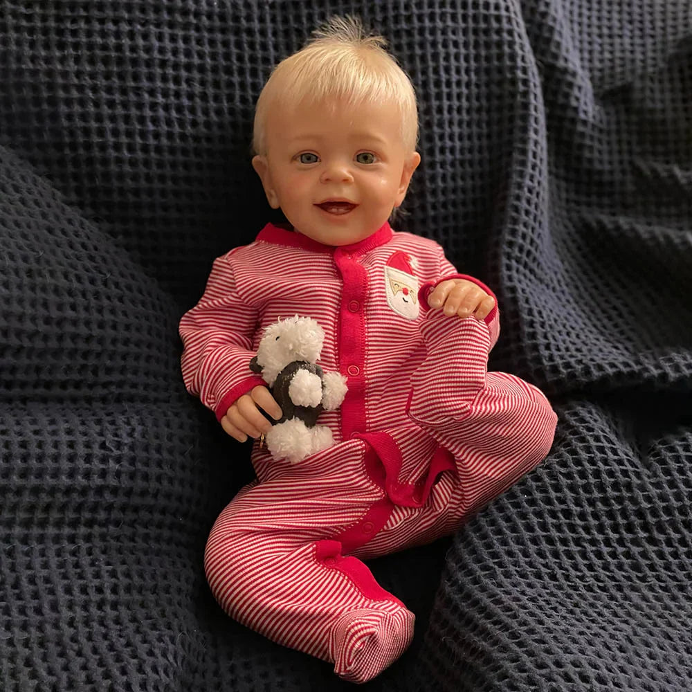 Poupée Reborn de Noël aux cheveux blonds et aux yeux ouverts de 24 pouces - Yannik