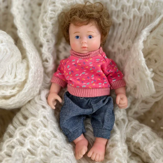 Poupée Reborn Mini en Silicone de 6 pouces avec Yeux Ouverts et Cheveux Courts