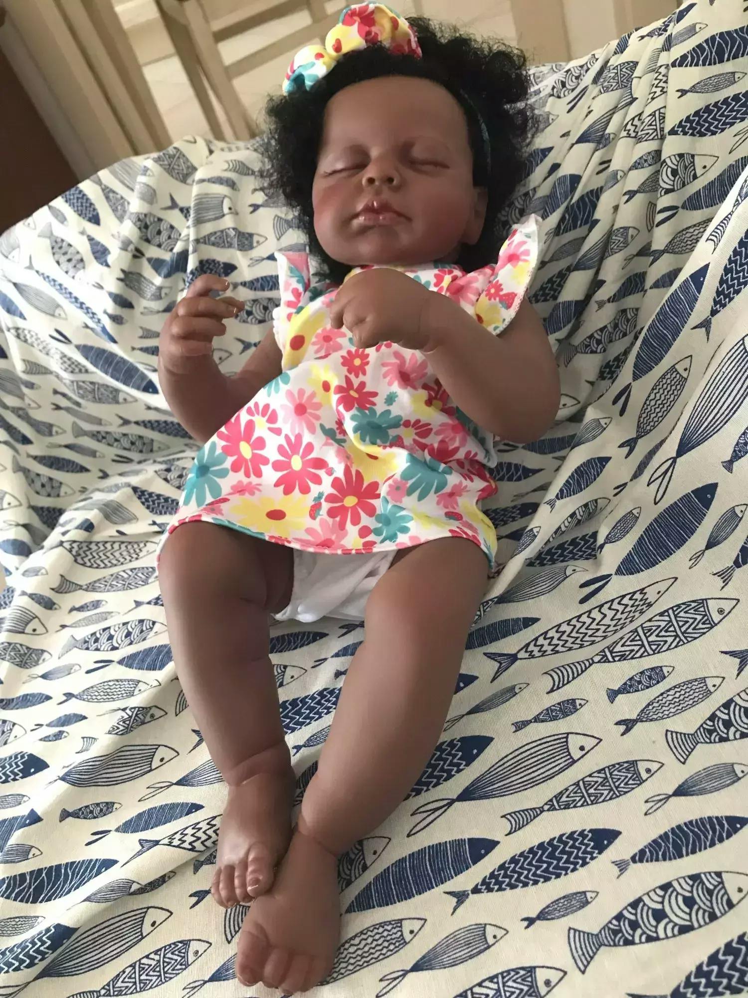 Poupées Reborn Afro-Américaines Julius Yeux Fermés 20 Pouces-Loulou