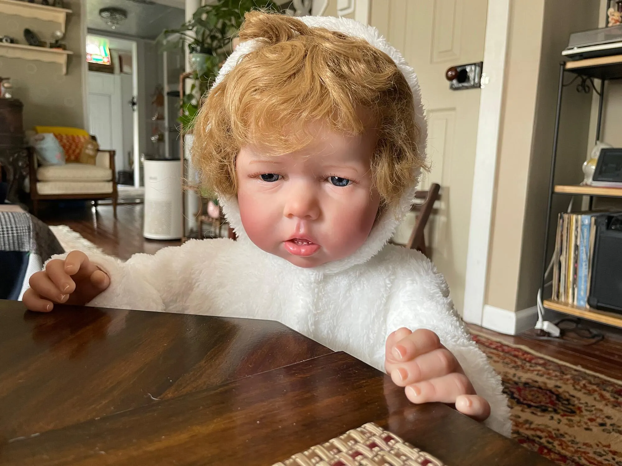 Tout est question de douceur ! Les épaules et le corps du bébé sont en coton de haute qualité, l'intérieur est rempli de coton PP ; les bras et les jambes sont en vinyle GentleTouch et les membres ne sont pas amovibles. Ces poupées n'ont pas de sexe. Vous pouvez facilement vous asseoir et vous allonger, mais pas vous tenir debout ou vous baigner.