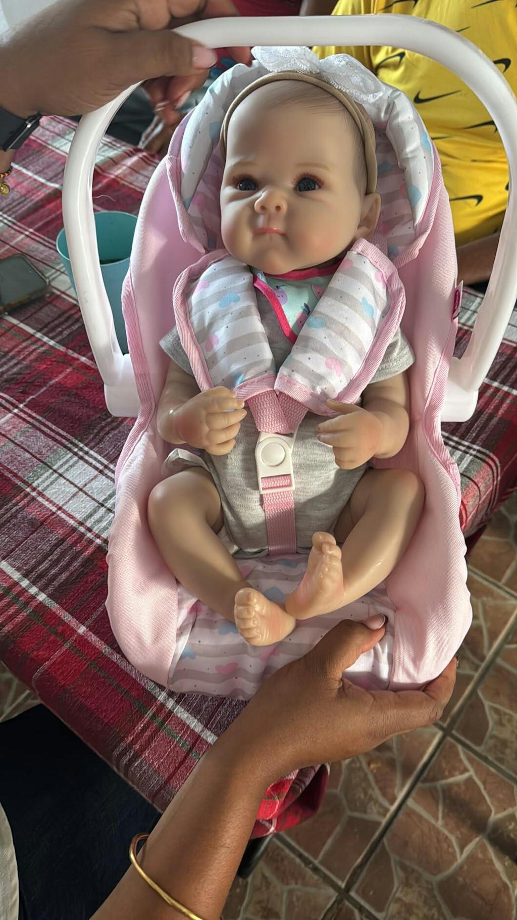 Tout va bien. Il est un peu lourd, j'ai acheté un porte-bébé mais il est lourd, mais c'est amusant de jouer avec.