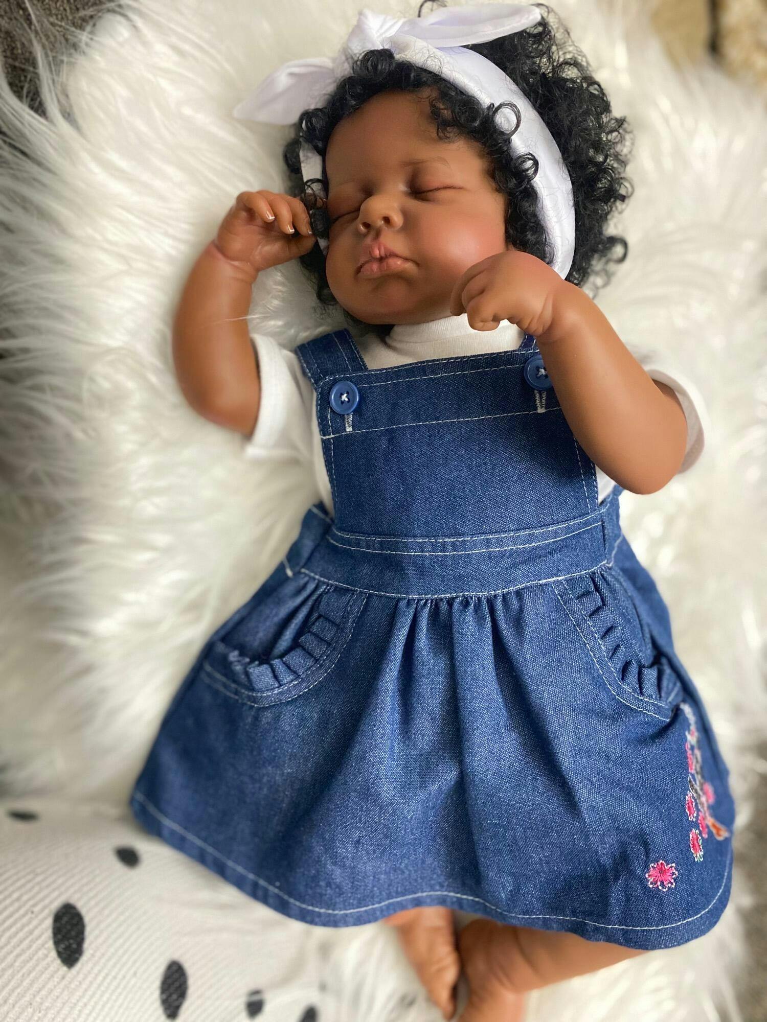 Zora 20 pouces yeux fermés poupées afro-américaines reborn-Loulou